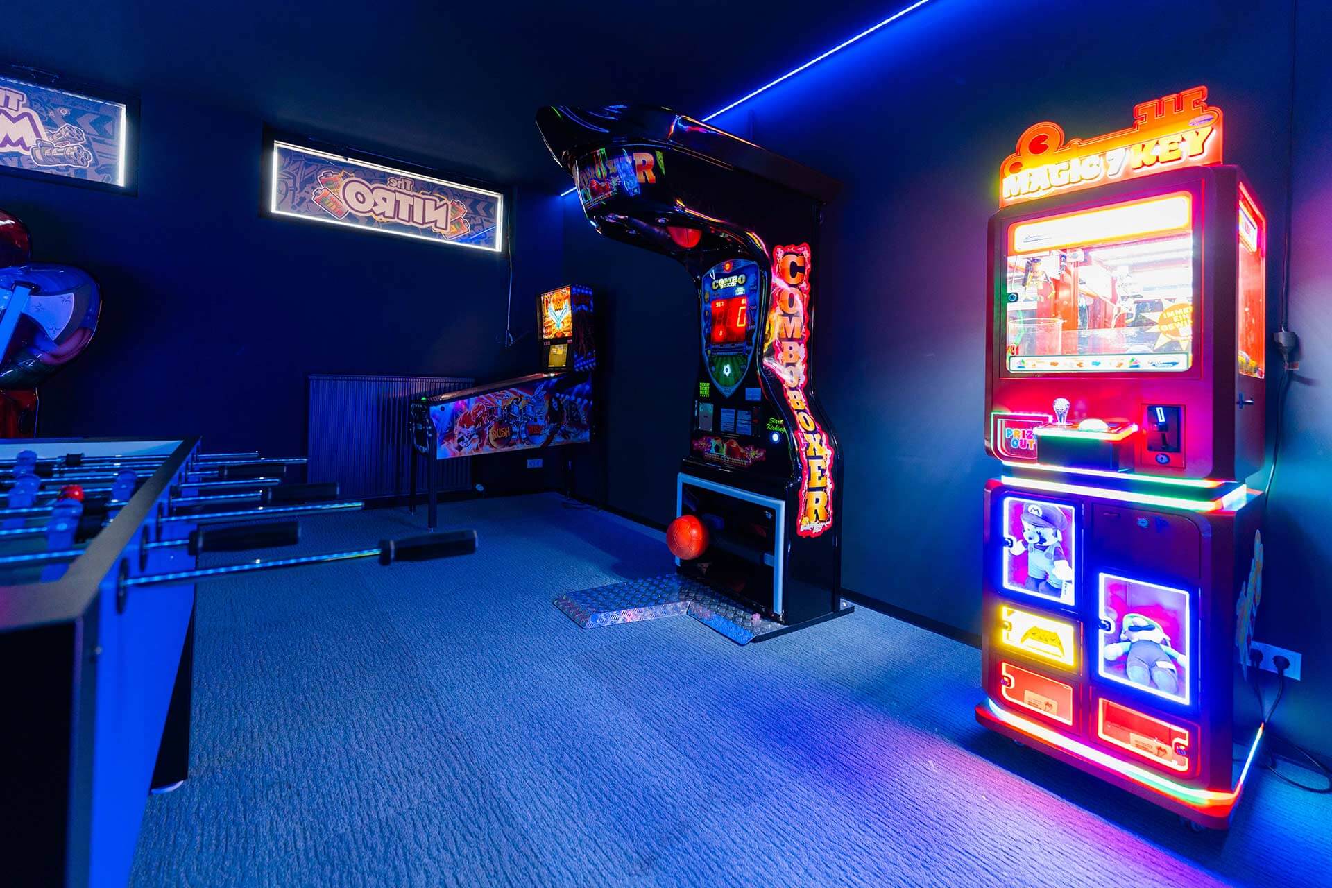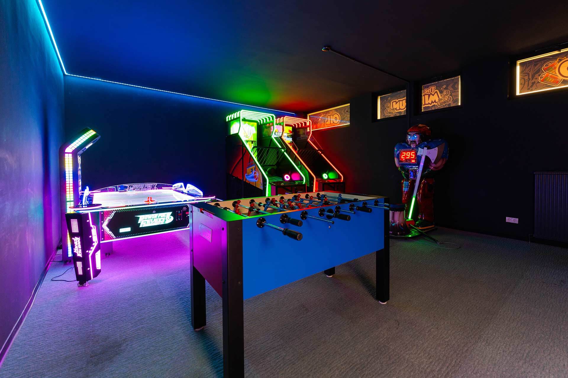 Der Arcaderaum ist ein wahres Paradies für Gaming-Fans. In diesem Bereich finden Besucher eine Vielzahl an klassischen und modernen Arcade-Automaten, die für unendlichen Spielspaß sorgen. Egal, ob du ein Fan von Retro- oder aktuellen Games bist, hier ist für jeden etwas dabei. Der Raum bietet zudem Platz für Multiplayer-Spiele, sodass du dich mit Freunden messen oder gemeinsam gegen die Maschine antreten kannst.